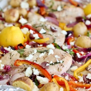 Greek Chicken Sheet Pan Dinner – ย A colorful healthy meal with minimal prep. ย Packed with lean chicken breasts and fresh vegetables in a classic Mediterranean recipe. ย Best of all everything is cooked on one sheet pan which means very little clean up. Why you will love this Greek Chicken Sheet Pan Dinner – Easy…