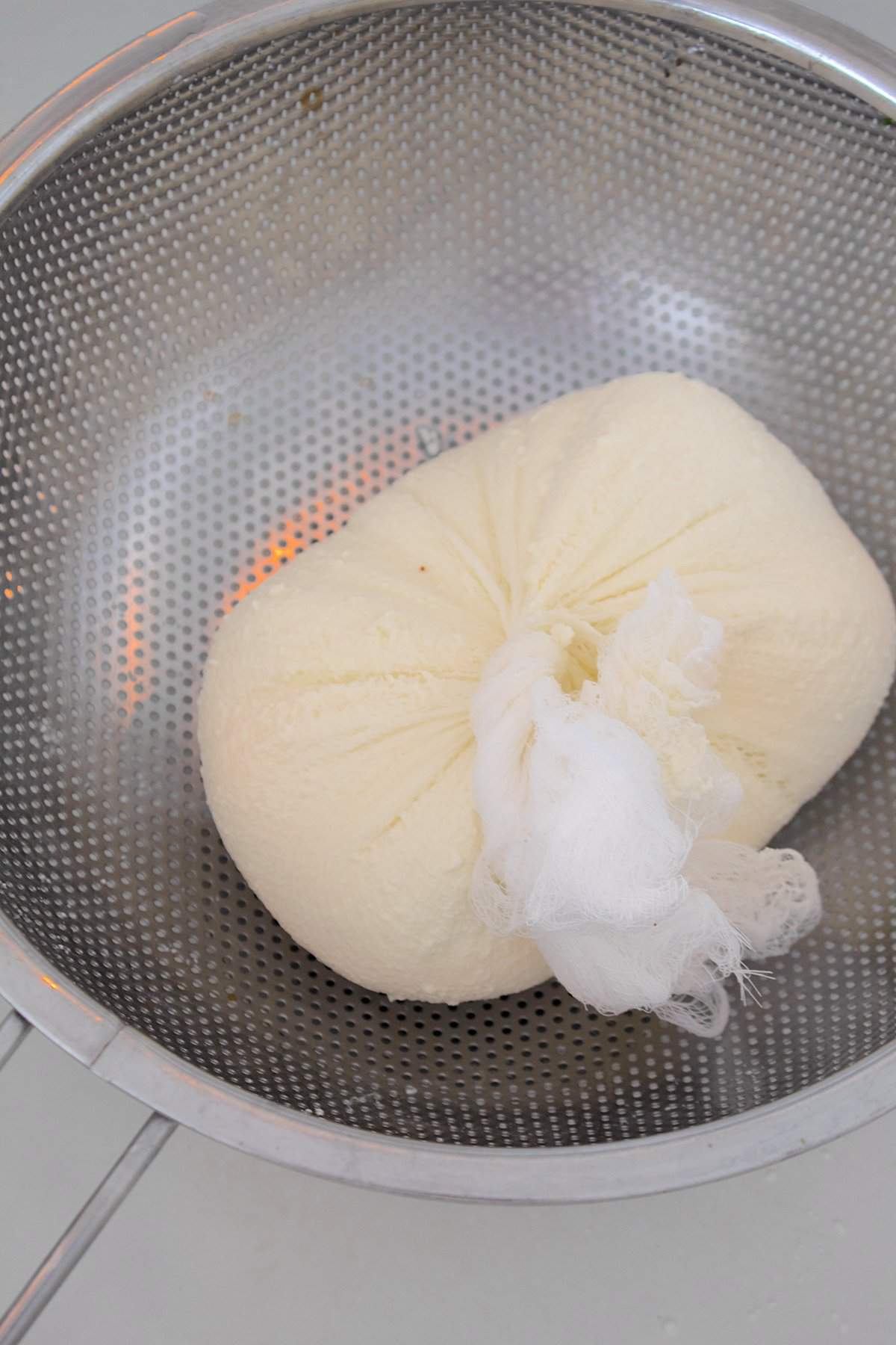 - If you want a firmer ricotta cheese, twist cheesecloth into 'bag' and strain liquid. If you want a looser ricotta, only lightly strain. See notes for different uses.